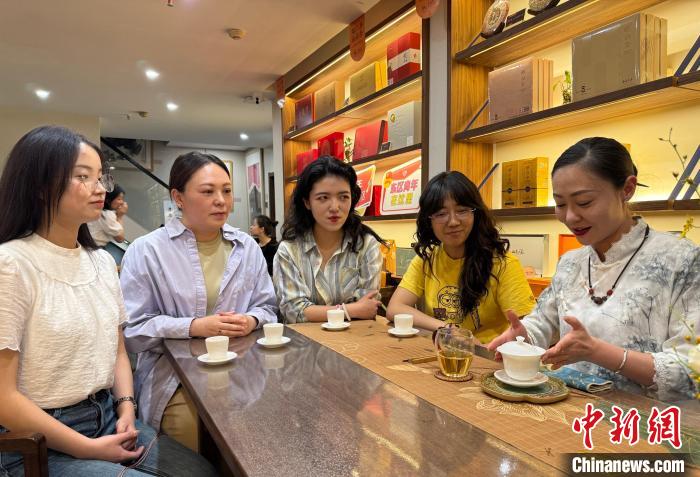 圖為青年在夜校體驗(yàn)品茗。陳宗淇 攝