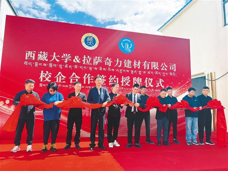 圖為西藏大學(xué)與拉薩奇力建材有限公司簽訂合作協(xié)議并剪彩。記者 央金 攝
