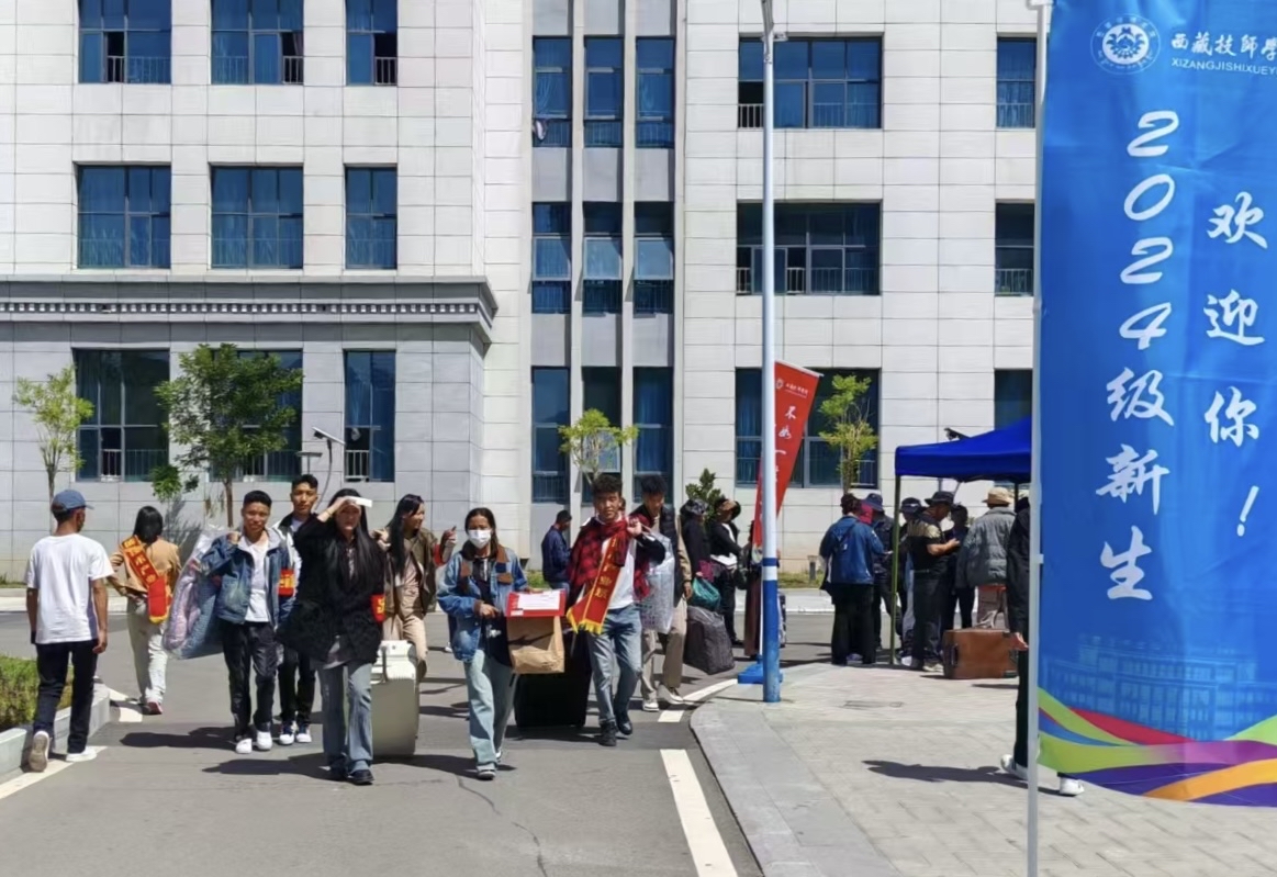 在西藏技師學(xué)院校園里,隨處可見“歡迎新同學(xué)”的標(biāo)語和展板,校園內(nèi)還設(shè)置了立體合影展臺(tái)供學(xué)生留影,營(yíng)造出了濃濃的暖心氛圍。學(xué)生和家長(zhǎng)們帶著大包小包的行李,秩序井然地進(jìn)入校園,找到所錄取專業(yè)報(bào)到點(diǎn)前完成入學(xué)手續(xù),各班班主任都等候在報(bào)到點(diǎn),耐心地回答學(xué)生們的疑問、專業(yè)學(xué)習(xí)情況、體檢和助學(xué)金的申請(qǐng)等問題。
