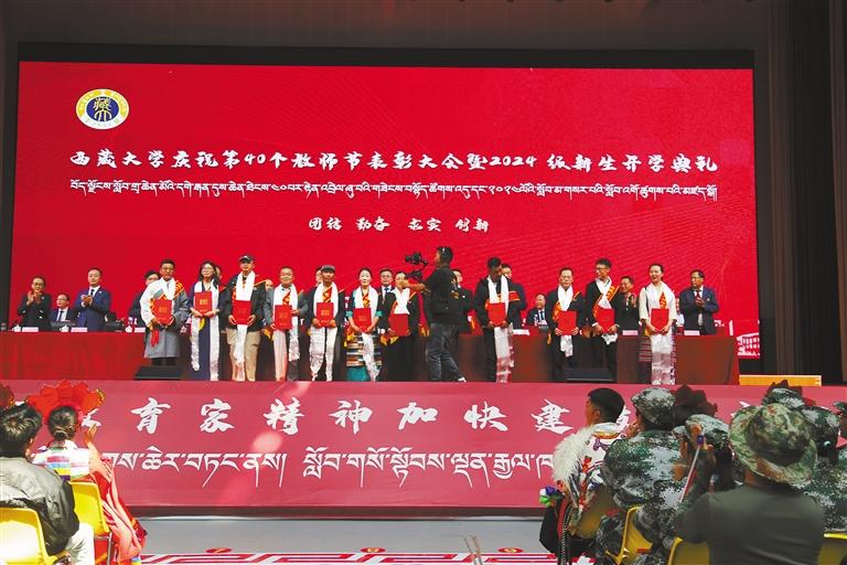 圖為9月10日下午,西藏大學(xué)在納金校區(qū)雙創(chuàng)活動(dòng)中心舉辦第40個(gè)教師節(jié)表彰大會(huì)暨2024級(jí)新生開學(xué)典禮。圖為優(yōu)秀教師表彰現(xiàn)場(chǎng)。記者 潘璐 攝