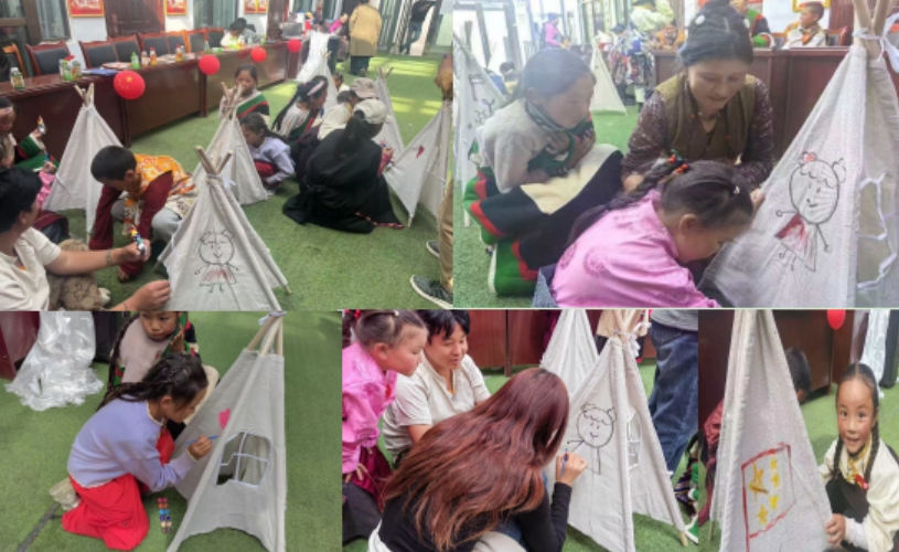 活動期間,孩子與家長一起拿畫筆將心中對祖國大家庭的熱愛和對美好生活五彩斑斕的想象繪制到小帳篷上,繪出專屬于自己獨(dú)一無二的多彩世界。