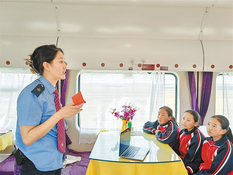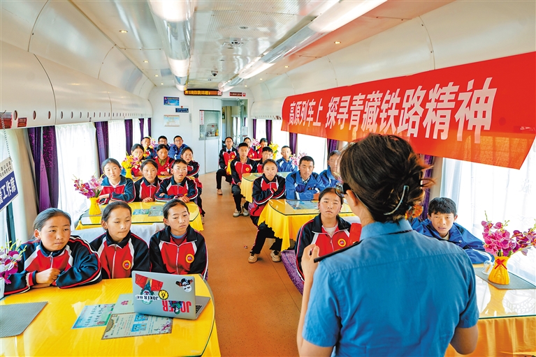 一個(gè)個(gè)關(guān)于青藏鐵路的歷史節(jié)點(diǎn)在四朗卓嘎口中娓娓道來(lái),一段數(shù)十年青藏鐵路建設(shè)的歷史畫(huà)卷在孩子們面前徐徐展開(kāi)。