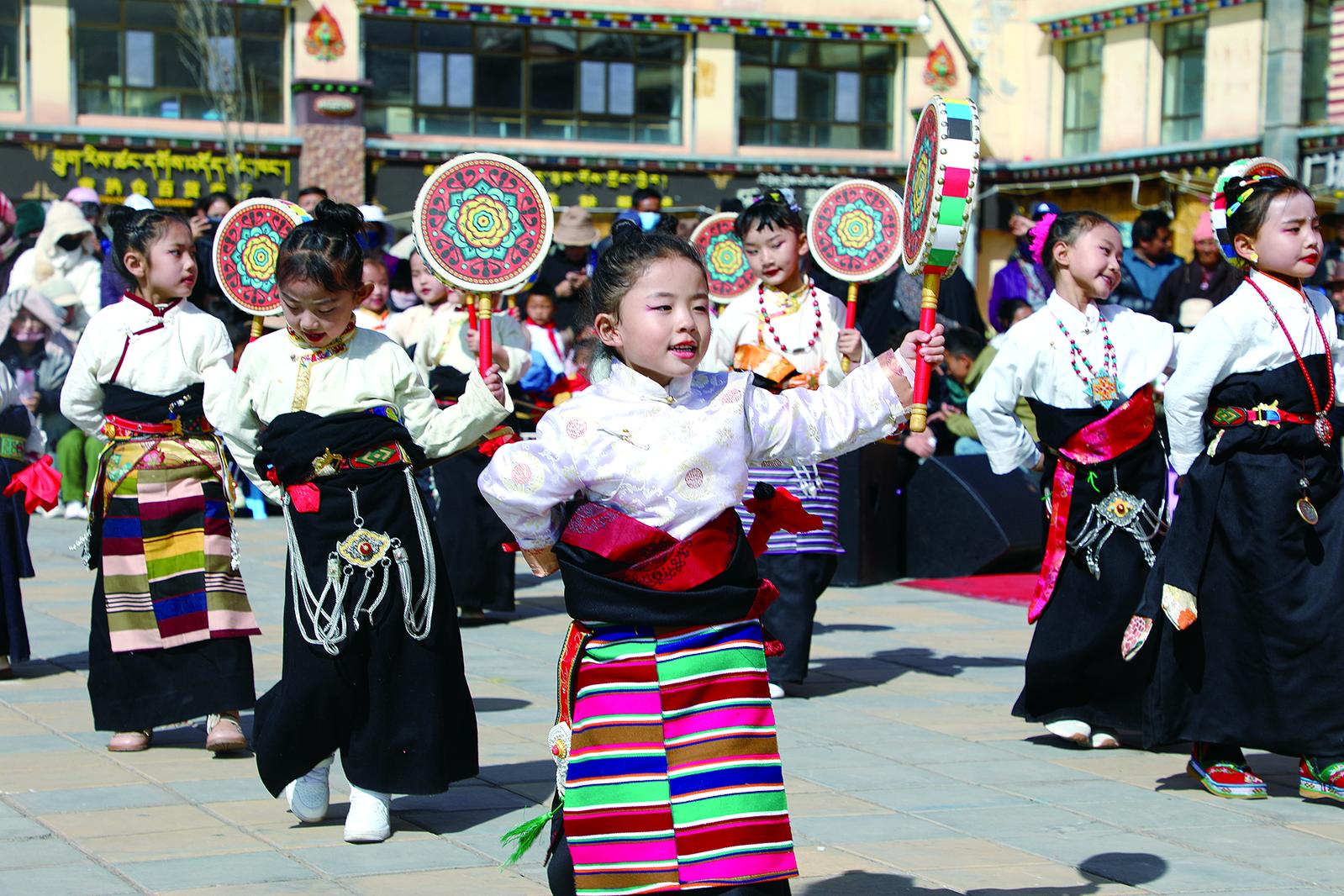 “現(xiàn)在幼兒園的教學(xué)條件有了很大提升,我們通過給孩子們觀看圖片、視頻,讓大家了解各個民族獨特的文化,知道自己所屬民族的分布區(qū)域、語言文字、風(fēng)俗等。走出教室,也有豐富多彩的集體活動,增強孩子們熱愛祖國、團(tuán)結(jié)互助的情感。目前,幼兒園已經(jīng)形成了8個領(lǐng)域的區(qū)域角,還摸索出傳統(tǒng)文化結(jié)合幼兒舞蹈融合非遺項目的學(xué)前教育新模式。”久美巴毛介紹。