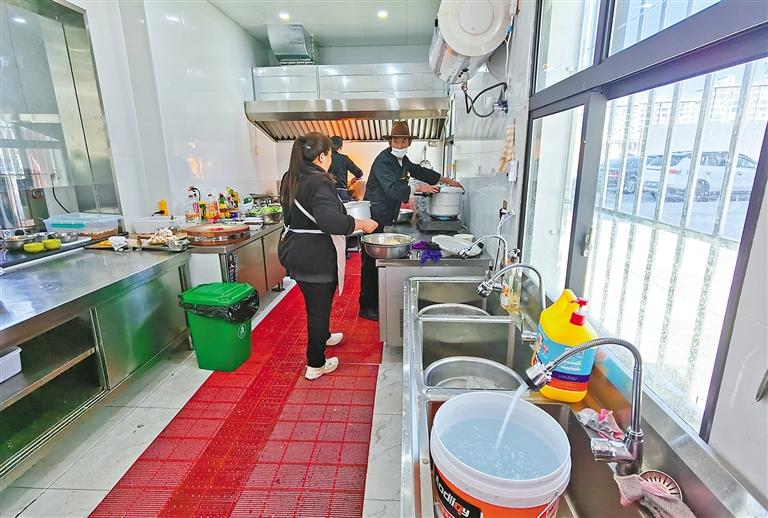 乃東區(qū)紅星社區(qū)食堂工作人員正在準(zhǔn)備飯菜。記者 孫開遠(yuǎn) 攝