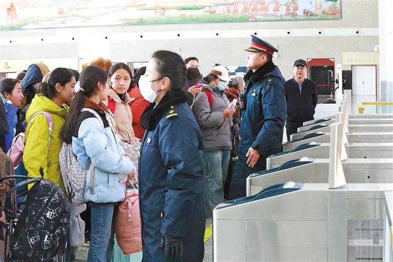 近日,為更好地服務學生寒假返鄉(xiāng),山南火車站積極與當地各學校聯系接洽,及時掌握返鄉(xiāng)學生的具體人數及客票、乘車需求等信息,并增設了學生票辦理專窗,安排專人引導。同時,山南火車站還組織人員在安檢口、檢票口、電扶梯、站臺等關鍵區(qū)域加強引導幫扶,特別開辟了學生安檢專用通道,幫助學生快速驗證進站,減少等待時間。