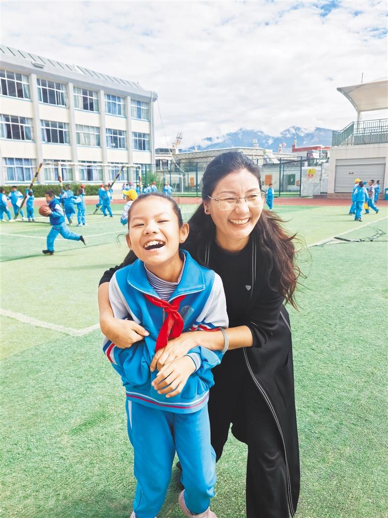 圖為卓瑪與學(xué)生在一起快樂(lè)互動(dòng)。