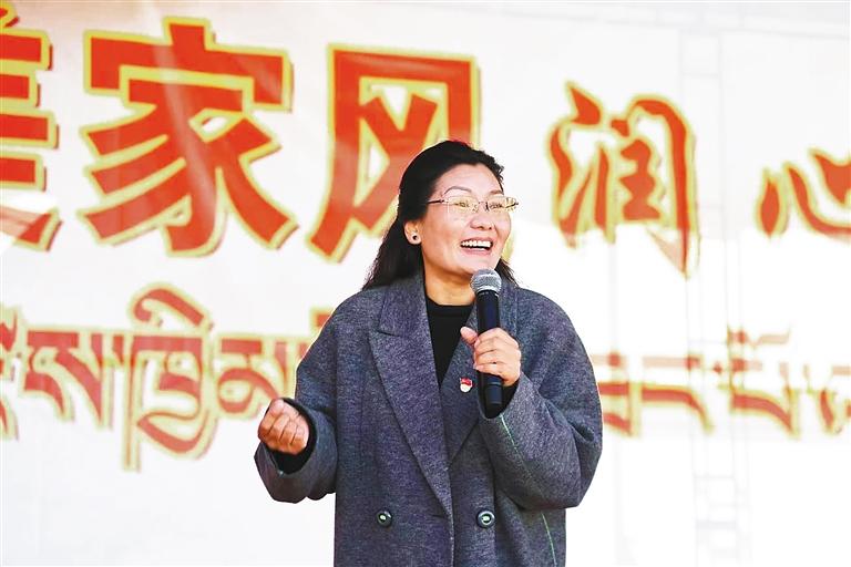 圖為卓瑪開(kāi)展家庭教育家庭美德宣講現(xiàn)場(chǎng)。文/圖 記者 武沛濤