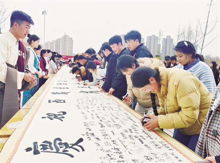 當(dāng)日清晨,一幅60米長的潔白卷軸徐徐鋪展,上書“雪域高原一甲子滄桑巨變 渭水河畔六十春立德樹人”,歌頌了西藏自治區(qū)成立60年來的輝煌成就,也表達(dá)了學(xué)校60余載為黨育人、為國育才的初心。學(xué)校領(lǐng)導(dǎo)、離退休干部、教職工、學(xué)生代表齊聚渭城校區(qū),鄭重地在長卷上簽下自己的姓名,每一筆都蘊(yùn)含著對(duì)黨的無限感恩、對(duì)祖國的無限熱愛和對(duì)西藏的無限祝福。