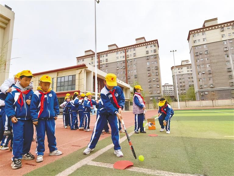 學(xué)生練習(xí)發(fā)球技巧。記者 明吉 鄭璐 見(jiàn)習(xí)記者 馮琳琳 攝