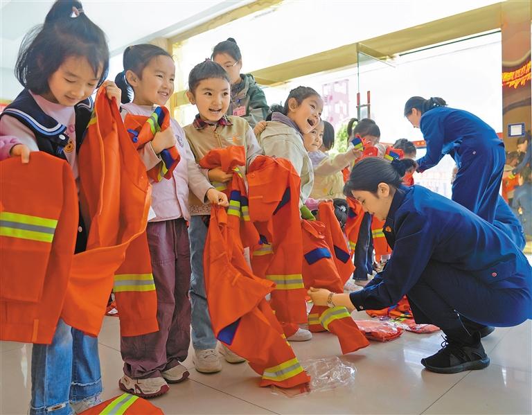 小朋友們穿上“迷你”搶險(xiǎn)救援服。