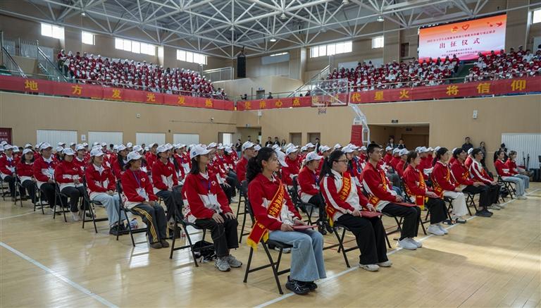 在激昂的音樂聲中,授旗環(huán)節(jié)莊嚴進行。接過出征旗后,志愿者們高舉右拳,集體莊嚴宣誓:“我志愿成為一名光榮的志愿者……”堅定的誓言在會場回蕩,他們發(fā)出了“青春為中國式現代化挺膺擔當”的錚錚誓言,展現出奉獻西部的決心與信念。