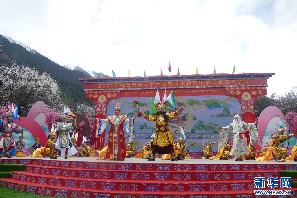 這是西藏林芝市第二十一屆桃花旅游文化節(jié)波密分會(huì)場(chǎng)活動(dòng)現(xiàn)場(chǎng)(4月2日攝)。新華社發(fā)