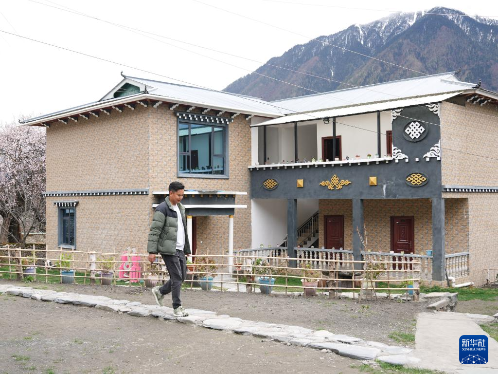 洛松頓珠從自家民宿前經(jīng)過(guò)(4月2日攝)。新華社記者 丁汀 攝