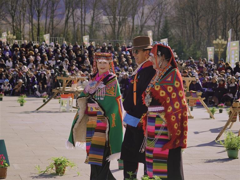 杭州西子湖畔,身著藏裝的演員與當?shù)厝罕姽参?;哈爾濱中央大街,演職人員身著藏裝推介日喀則旅游……近幾年,西藏各市(地)文旅部門前往區(qū)外舉行旅游推介會,除了帶去的西藏特產(chǎn)、民族手工藝品……工作人員與演職人員所穿的藏裝,也給區(qū)外群眾留下了深刻的印象,這讓西藏旅游“熱”了起來,藏裝也跟著“火”了起來。