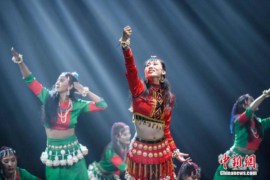圖為西藏日喀則市民族藝術(shù)團(tuán)演員帶來舞蹈《來自喜馬拉雅的祝福扎西德勒》表演。