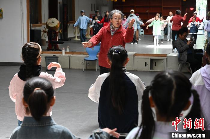 5月25日,藏戲表演藝術(shù)家、國家一級演員巴桑教授學(xué)生藏戲舞姿。中新社記者 趙朗 攝