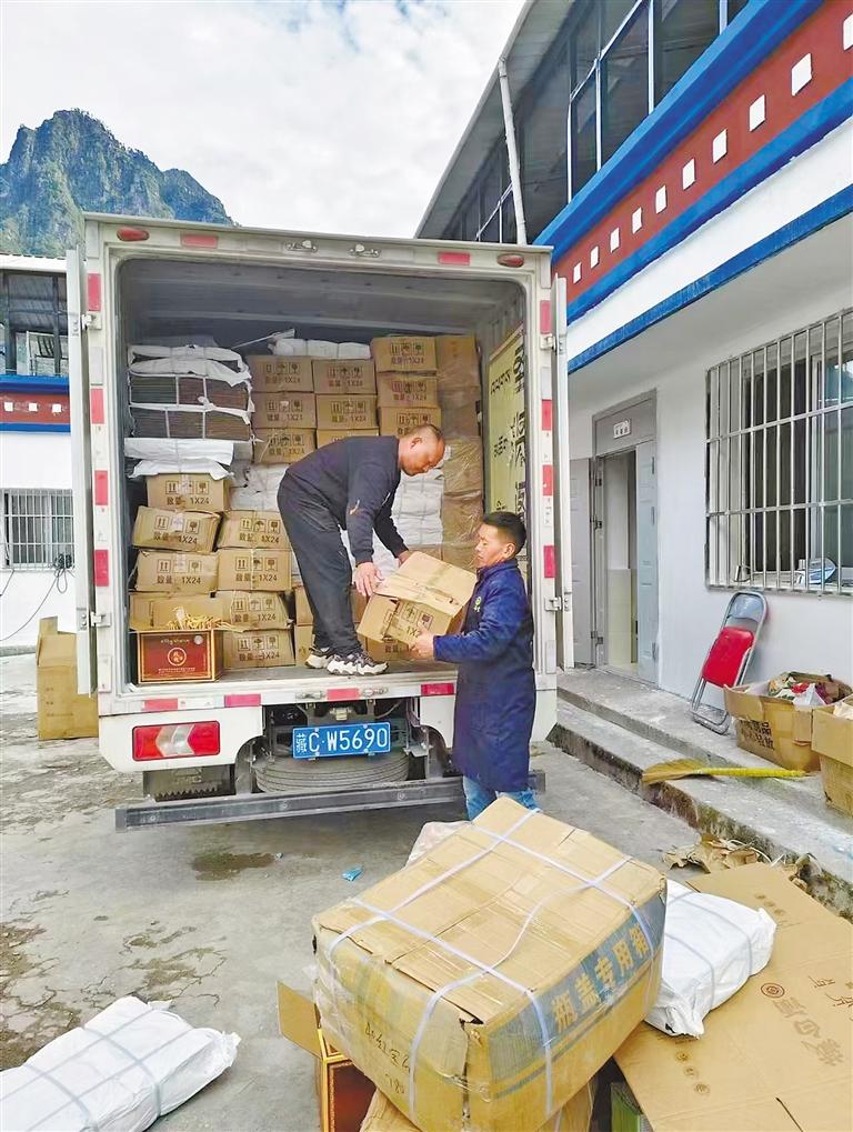 平措多吉將準備運輸銷售的扎日藏白酒裝車。