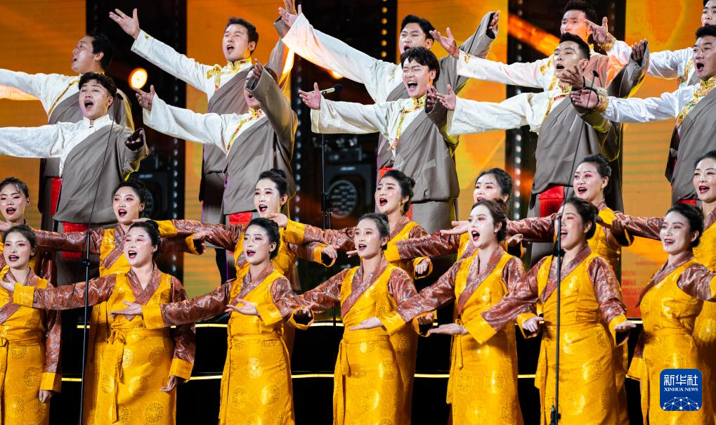 參賽隊伍在合唱大賽上演繹曲目(9月25日攝)。新華社記者 丁增尼達 攝 ??