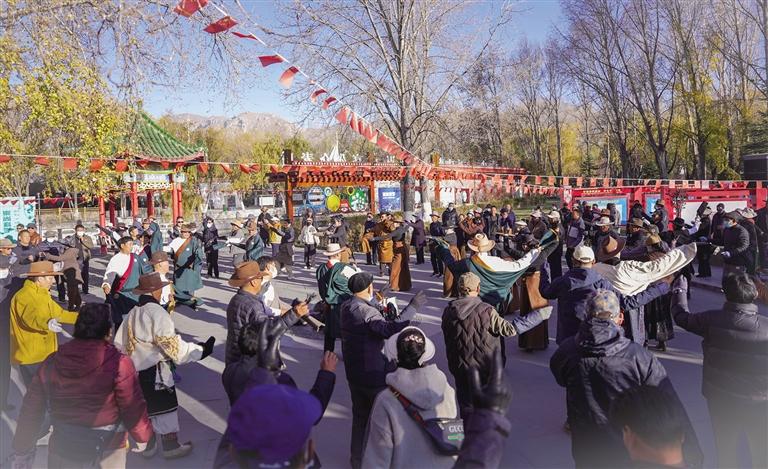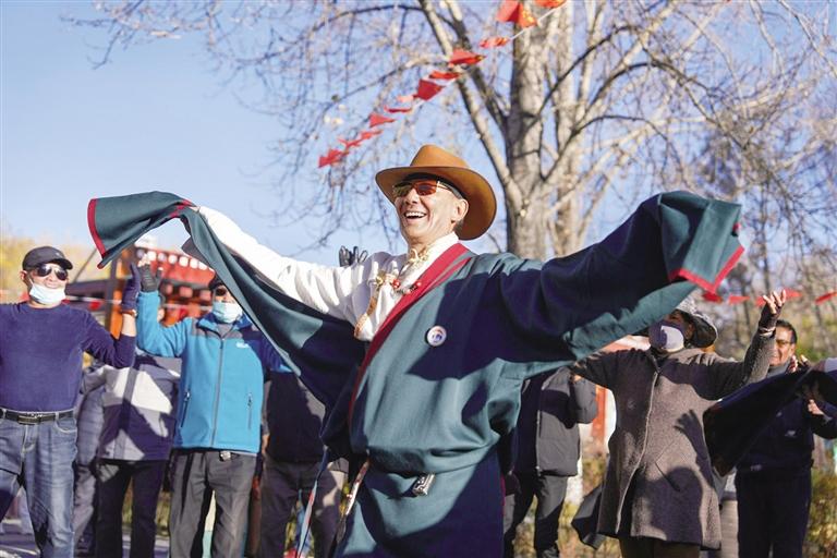 如今,隨著城鎮(zhèn)化發(fā)展,鍋莊漸漸融入人們的日常生活,成為很多人晨練和廣場舞的首選,刷新著人們對于傳統(tǒng)廣場舞的認(rèn)識?!拔覀兠褡宓膫鹘y(tǒng)舞蹈‘鍋莊’從農(nóng)牧區(qū)跳到城市,跳進(jìn)了大眾的日常生活,我感到很自豪。”來自那曲市的德慶卓瑪說。