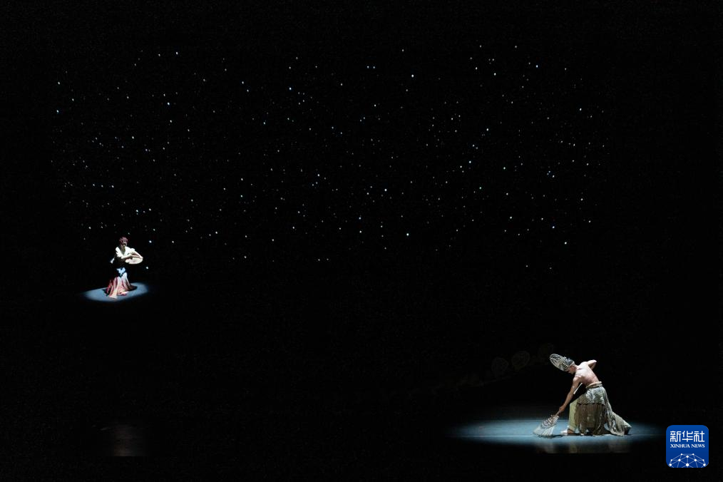 4月28日晚,演員在表演舞蹈史詩劇《詩經(jīng)·格薩爾》。新華社記者 旦增尼瑪曲珠 攝
