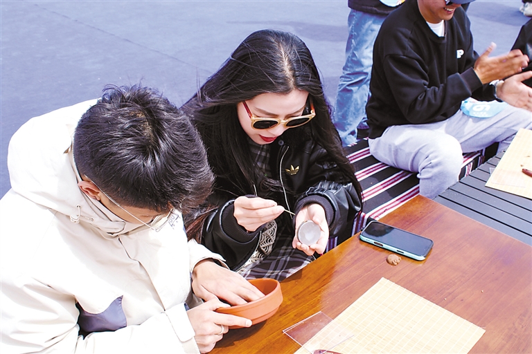 青年體驗(yàn)制作藏香。