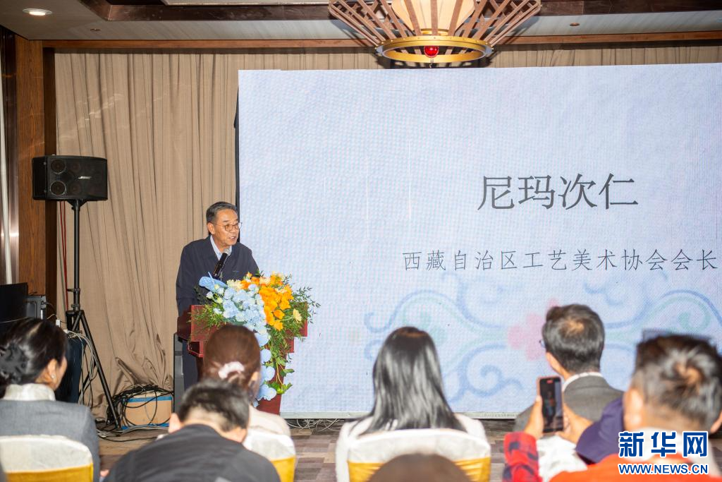 7月7日,西藏自治區(qū)工藝美術協(xié)會會長尼瑪次仁在活動現(xiàn)場交流發(fā)言。新華網(wǎng) 旦增努布 攝