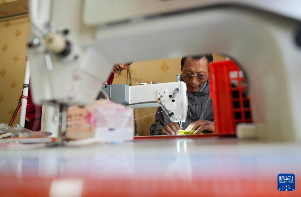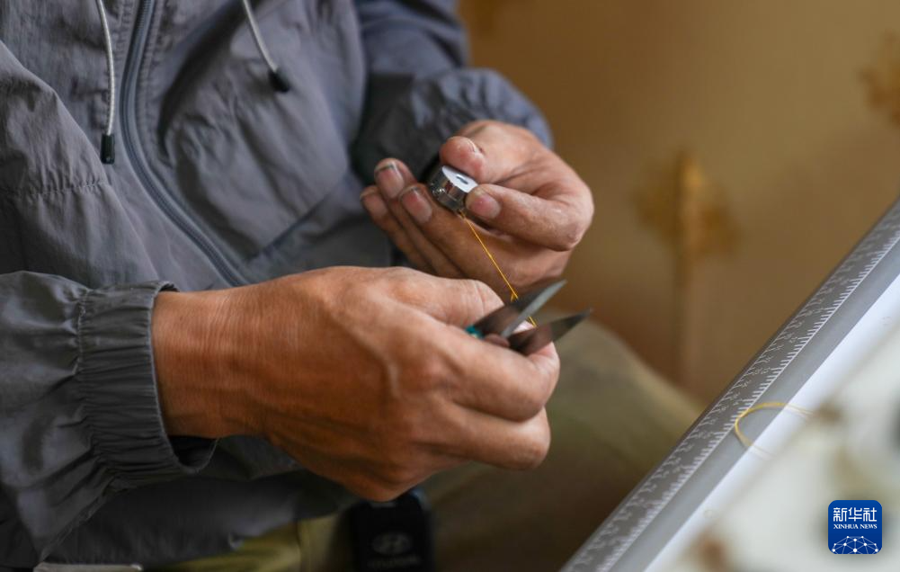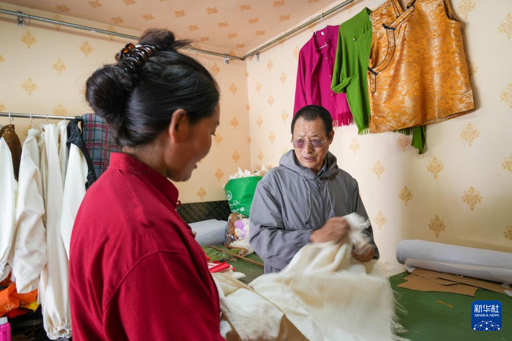 洛桑麥朗來到畢業(yè)學(xué)生開設(shè)的店鋪,現(xiàn)場示范制衣過程中的細(xì)節(jié)(8月15日攝)。新華社記者 晉美多吉 攝