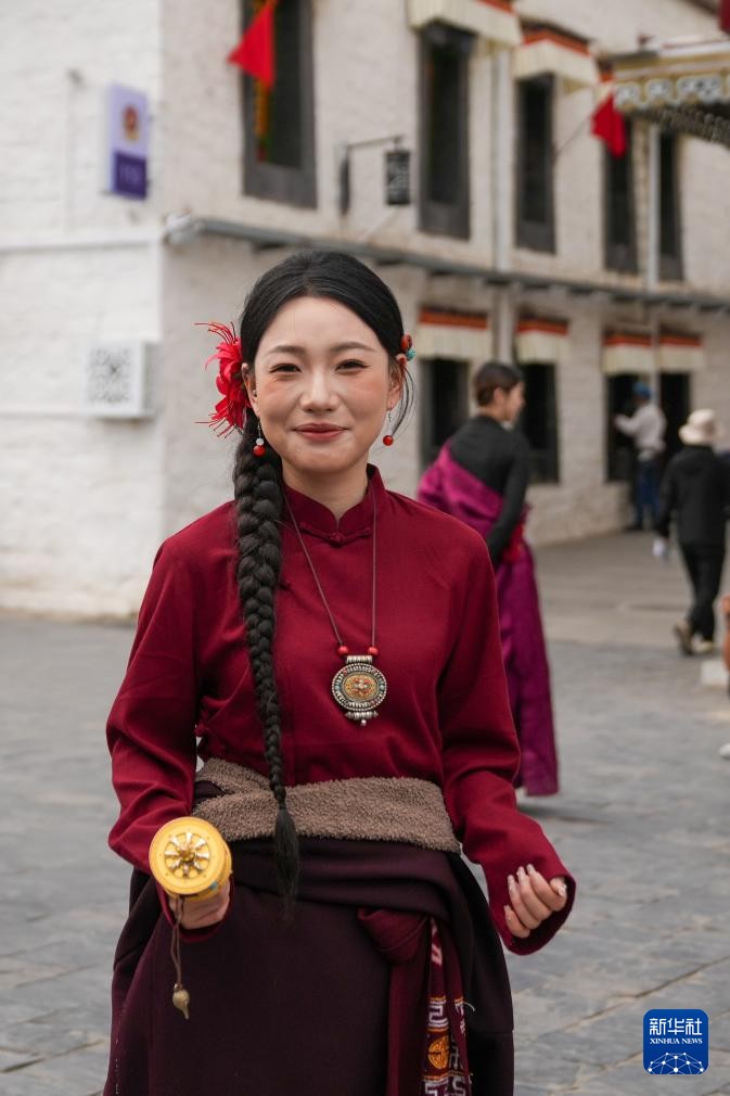 作為藏族服飾的主要類別之一,拉薩服飾的基本特征鮮明,肥腰、長袖、大襟、右衽、長裙、長靴、編發(fā)以及琳瑯滿目的金銀珠玉飾品等特征,不僅體現(xiàn)了藏族人民的審美觀念,更與他們的生活環(huán)境和生產(chǎn)方式息息相關(guān)。2018年6月,拉薩服飾被列入西藏自治區(qū)非物質(zhì)文化遺產(chǎn)名錄。