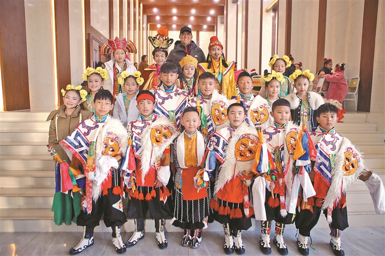 圖為中普瓊和自治區(qū)群藝館(區(qū)非遺保護中心)少兒藏戲班演出學生合影。