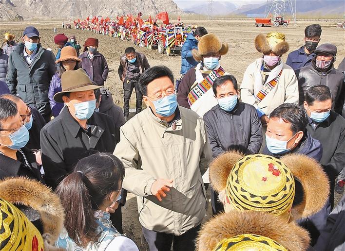一年之計在于春。16日上午,西藏自治區(qū)黨委書記吳英杰和區(qū)黨委副書記、自治區(qū)人大常委會主任洛桑江村專程來到拉薩市曲水縣田間地頭、農(nóng)牧系統(tǒng)單位,與當?shù)馗刹咳罕娬勌厣a(chǎn)業(yè)經(jīng)、算增收致富賬,實地調(diào)研春耕春播工作情況。吳英杰強調(diào),要戰(zhàn)“疫”不誤農(nóng),始終堅持以人民為中心的發(fā)展思想,找準農(nóng)牧民增收致富的“切入點”,深入推進農(nóng)牧業(yè)供給側(cè)結(jié)構性改革,確保農(nóng)牧民群眾不離鄉(xiāng)不離土就能依靠產(chǎn)業(yè)發(fā)展增收致富。