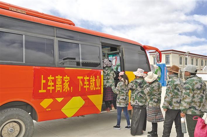 圖為近日桑珠孜區(qū)江當(dāng)鄉(xiāng)郭加新村52名農(nóng)牧民群眾,搭乘當(dāng)?shù)卣赓M(fèi)提供的大巴車,有序前往白朗縣蔬菜產(chǎn)業(yè)園務(wù)工。記者 汪純 攝