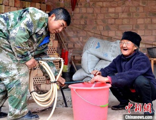 圖為甘肅天水市武山縣水務(wù)局助農(nóng)戶吃上“幸福水”。(資料圖)甘肅省水利廳供圖