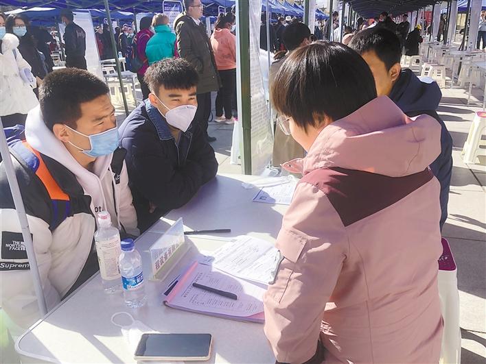 圖為求職者在咨詢(xún)招聘信息。記者 王靜 攝