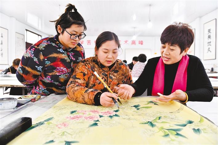 山東省菏澤市巨野縣依托“菏澤牡丹”的資源優(yōu)勢,近年來著力打造工筆牡丹畫文化產(chǎn)業(yè),鞏固脫貧攻堅(jiān)成果,有序推進(jìn)鄉(xiāng)村振興。目前,巨野縣有50個(gè)繪畫專業(yè)村,從業(yè)人員達(dá)1.5萬人。巨幅工筆牡丹畫作品先后亮相上合組織青島峰會、中國國際進(jìn)口博覽會等重大活動。