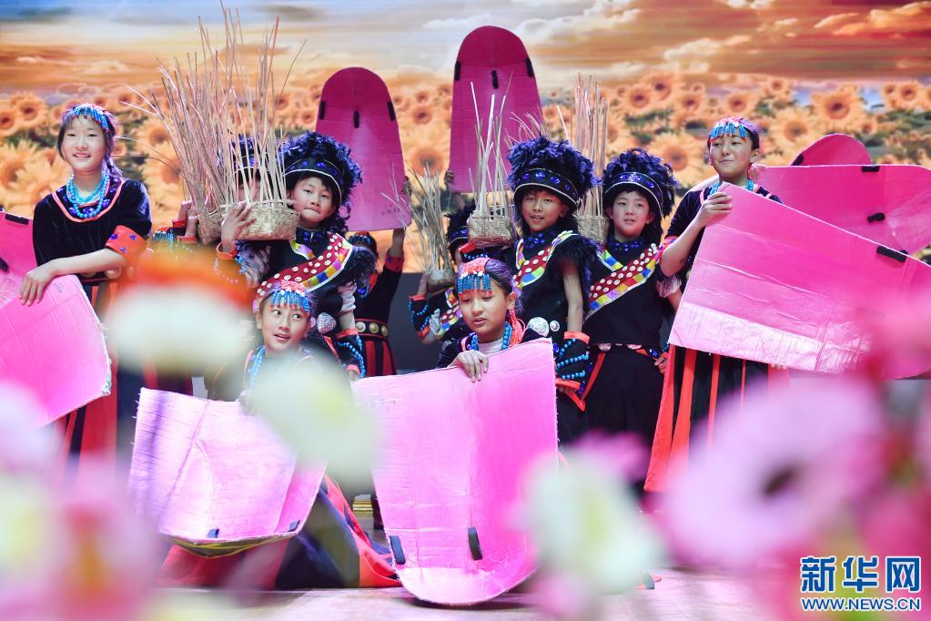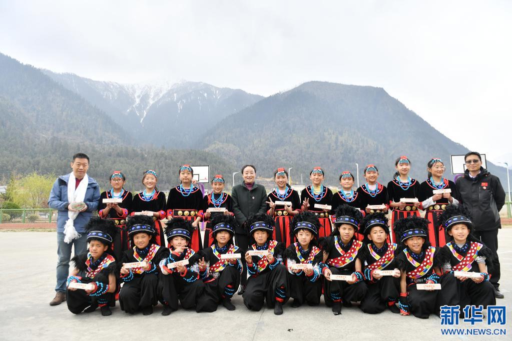 3月30日,米林縣中學學生在“U+校餐計劃”捐贈儀式上表演節(jié)目。新華社記者 孫瑞博 攝