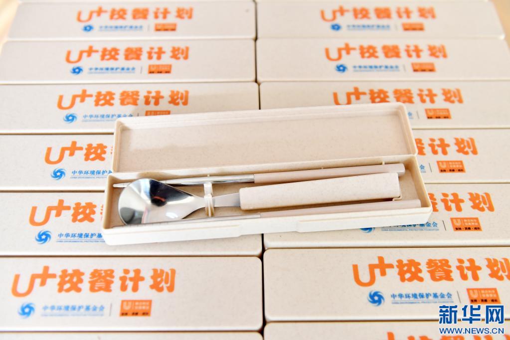 這是3月30日在米林縣中學拍攝的“U+校餐計劃”捐贈的便攜餐具。新華社記者 孫瑞博 攝