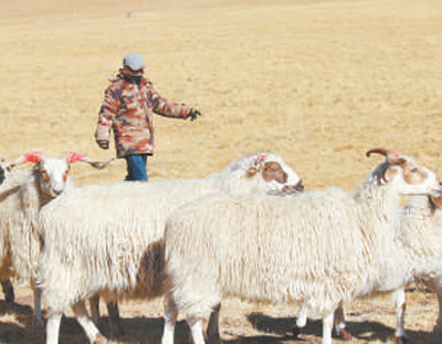 達(dá)玉村生態(tài)畜牧業(yè)專業(yè)合作社放牧員才科在放牧。記者 王 梅攝