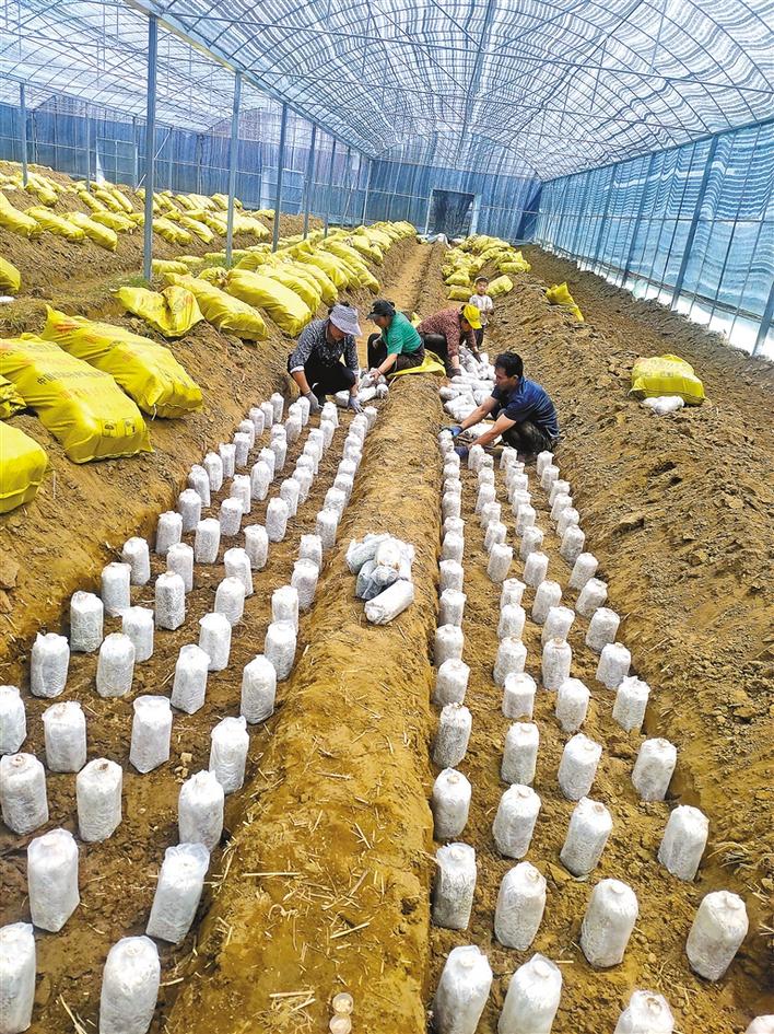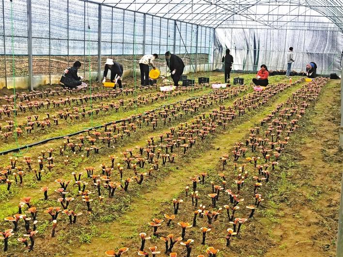 圖為紅太陽(yáng)家庭農(nóng)場(chǎng)工作人員在采摘靈芝。 記者 措姆 攝