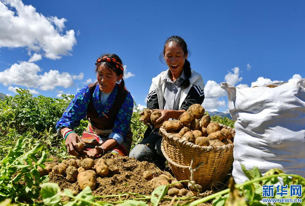 日喀則市桑珠孜區(qū)東嘎鄉(xiāng)祺瑪黨慶現(xiàn)代農(nóng)業(yè)發(fā)展專(zhuān)業(yè)合作社社員在分揀土豆(2018年9月4日攝)。 新華社記者張汝鋒 攝