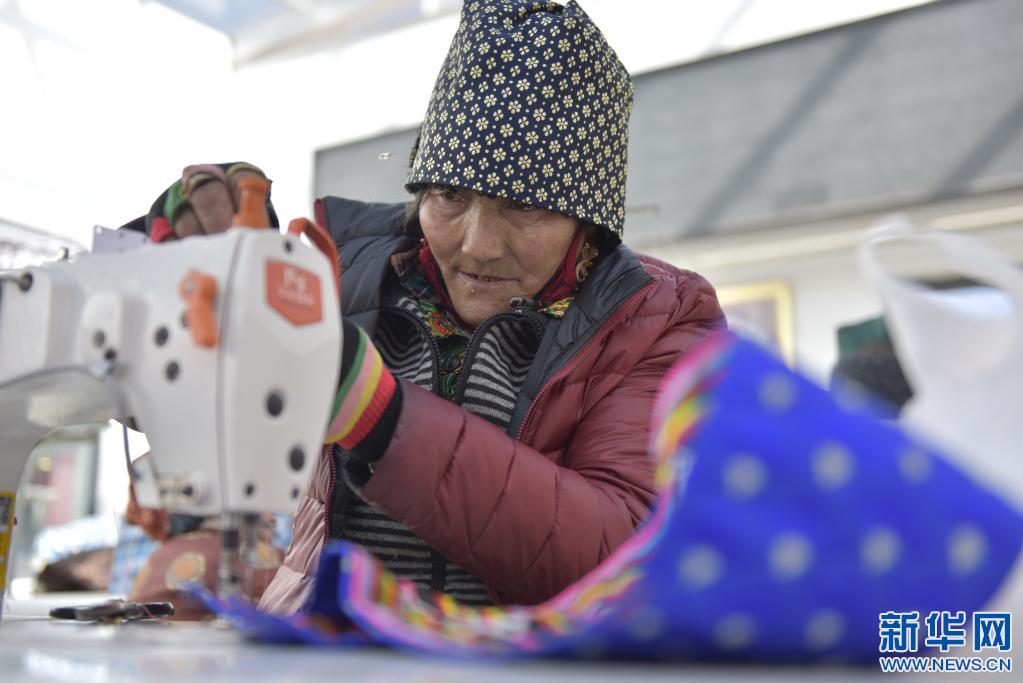 在民族服裝縫紉制造農(nóng)民專(zhuān)業(yè)合作社里,拉卓正在縫制產(chǎn)品(2021年2月2日攝)。 新華社記者田金文 攝