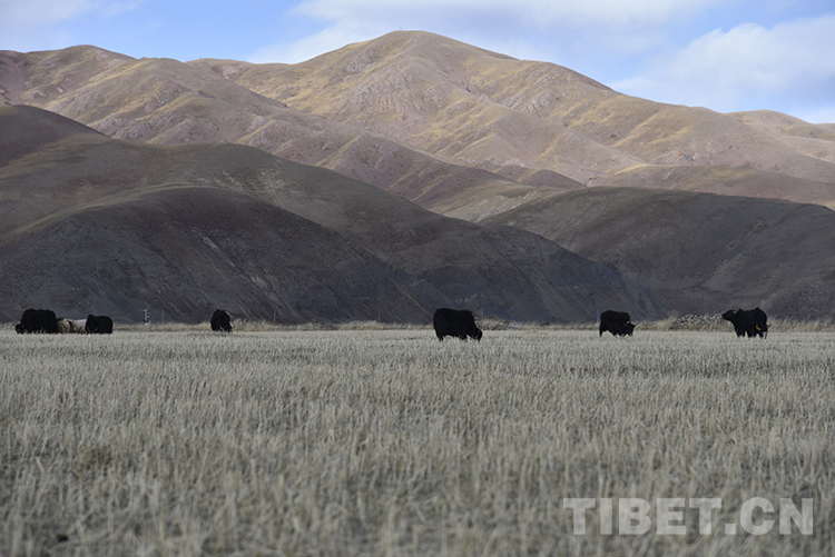 圖為嘎?tīng)柕律鷳B(tài)畜牧產(chǎn)業(yè)示范基地里牦牛悠閑覓食 攝影:王媛媛