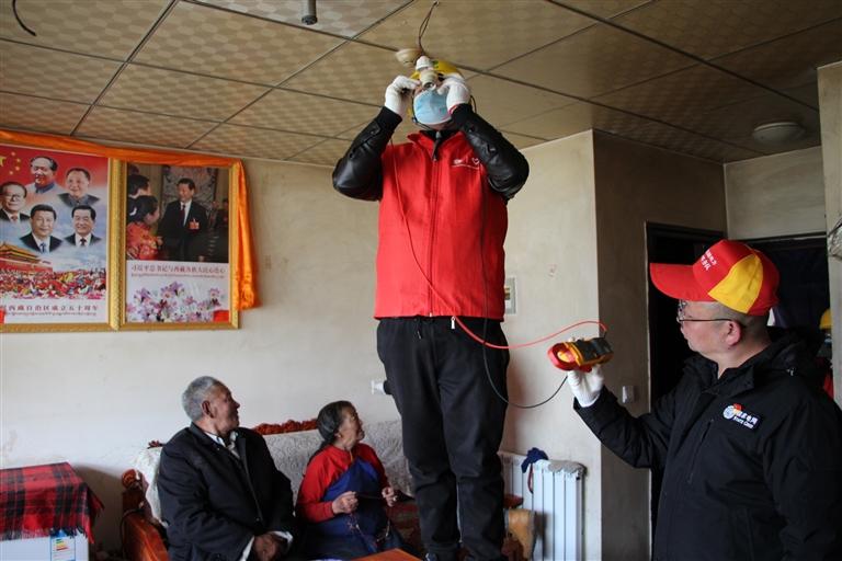 圖為國(guó)網(wǎng)那曲供電公司工作人員在色尼區(qū)特困人員集中供養(yǎng)服務(wù)中心維修電路。記者 萬靖 攝