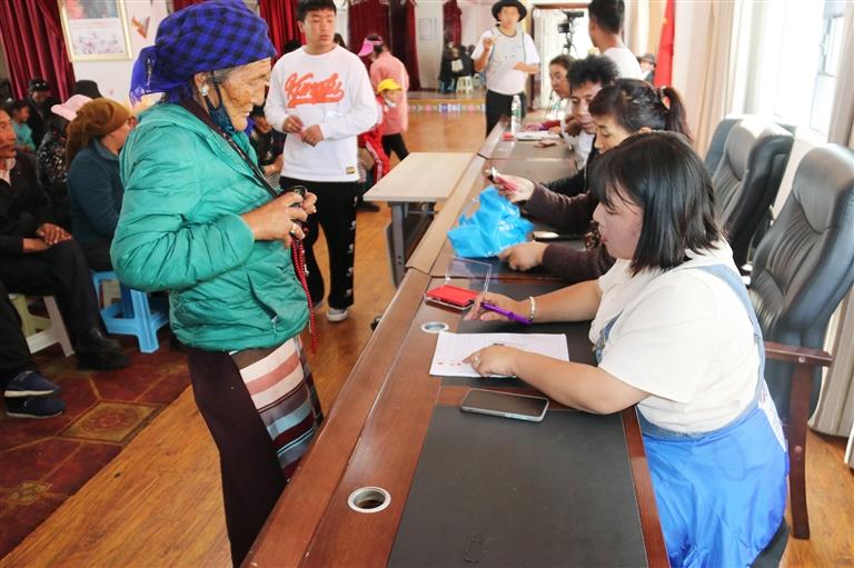 西藏福邁園林綠化有限公司為搬遷群眾發(fā)放工資。圖由恩惠苑社區(qū)提供