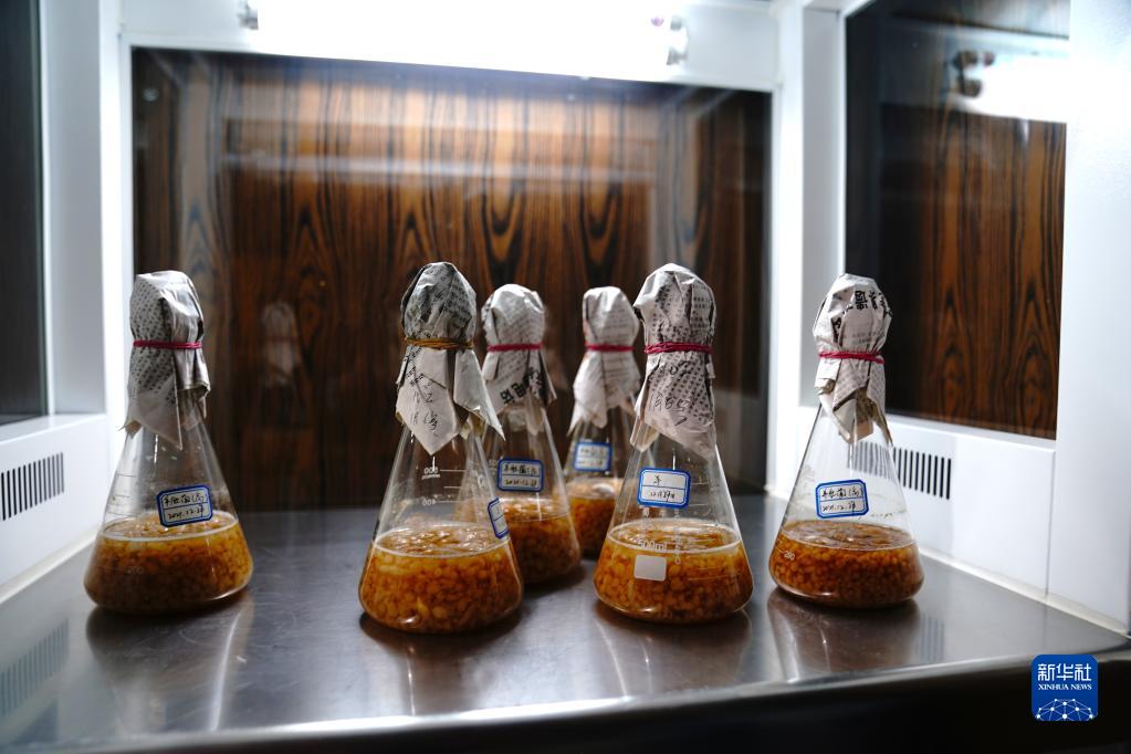 索珠村藏藥材種植基地培育的液體羊肚菌菌種(2022年1月24日攝)。 新華社記者劉洪明 攝