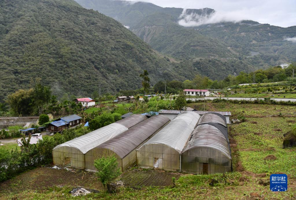幾個蔬菜大棚依山而建