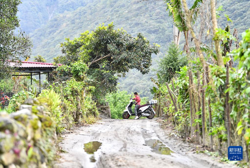 明珠措姆準(zhǔn)備騎摩托車前往市場,銷售剛采摘的平菇(4月14日攝)。