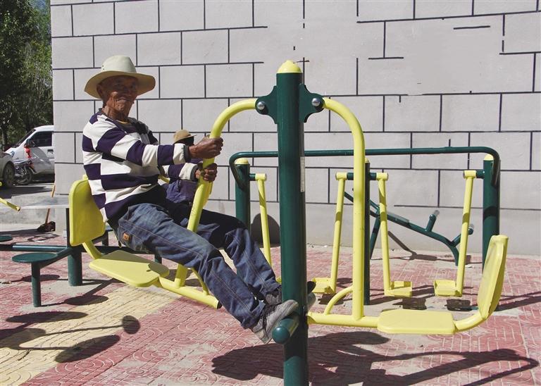 拉薩市民在健身設(shè)施上鍛煉。