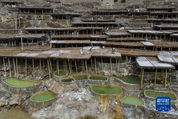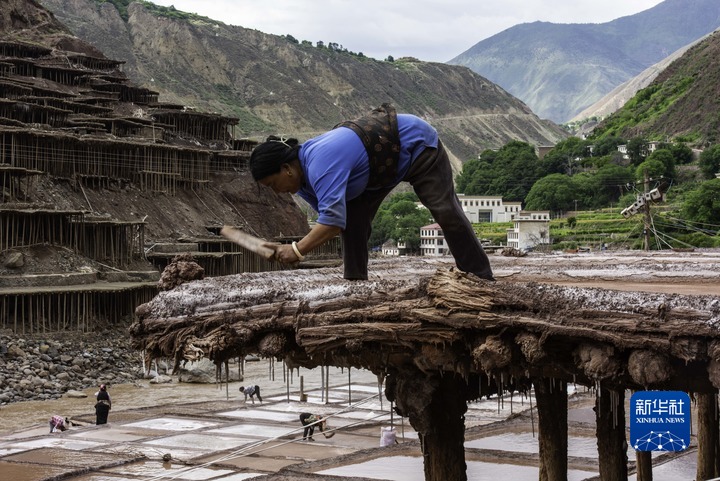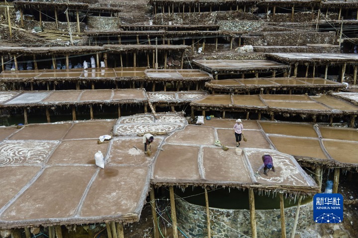 加達(dá)村村民在古鹽田里勞作(5月26日攝)。新華社記者 陳尚才 攝