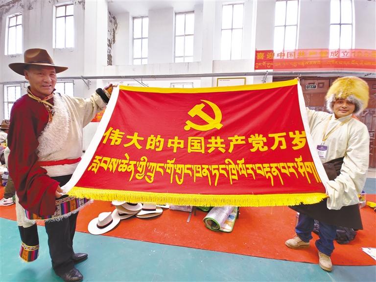 也有不少牧民,希望把藏北牧民愛黨愛國愛家鄉(xiāng)的熱情注入到傳統(tǒng)工藝當中。在比賽現(xiàn)場,記者看到很多牧民在傳統(tǒng)的氆氌和背包上刺繡、拼貼出黨徽、國旗、天安門等圖案,或繡出“偉大的中國共產黨萬歲”“鄉(xiāng)村振興那曲奮進”等字樣。