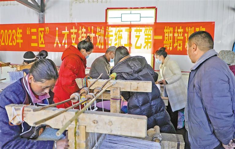 近日,山南市洛扎縣組織25名學(xué)員,采用理論與實(shí)操相結(jié)合的方式,舉辦了2023年“三區(qū)”人才支持計(jì)劃傳統(tǒng)工藝第一期培訓(xùn),現(xiàn)場教授學(xué)員學(xué)習(xí)卡墊織造技藝。